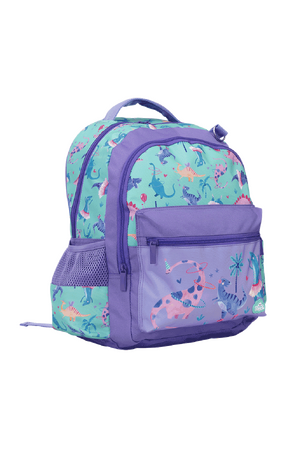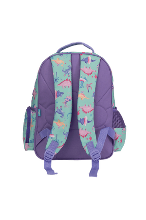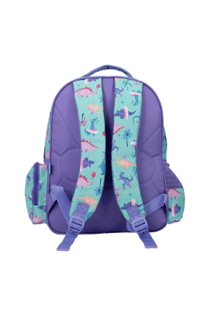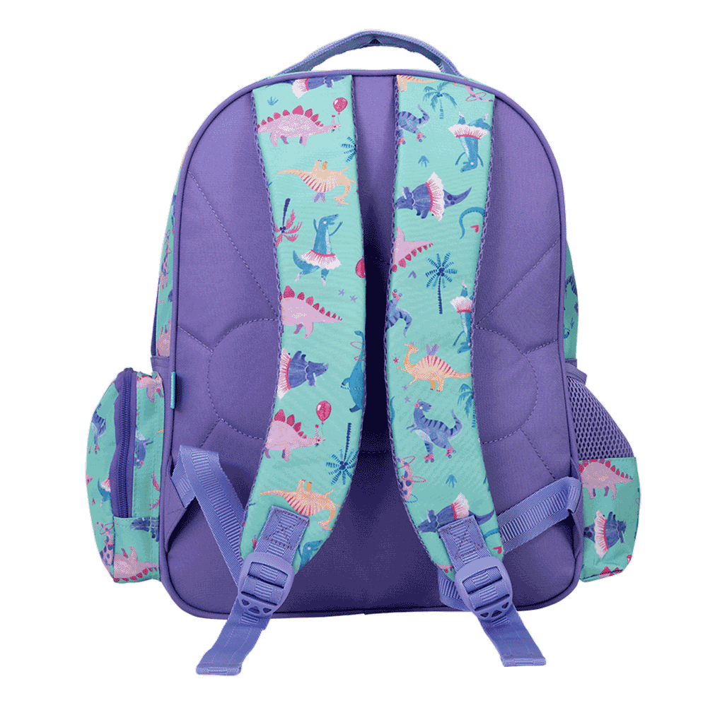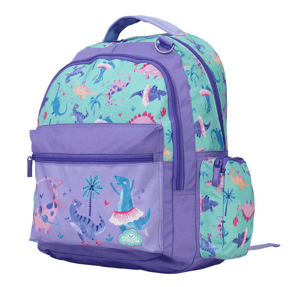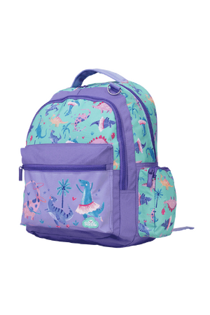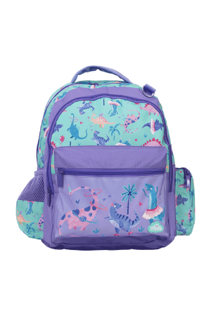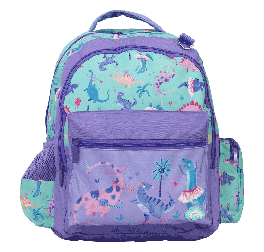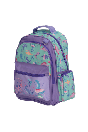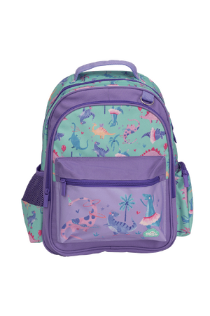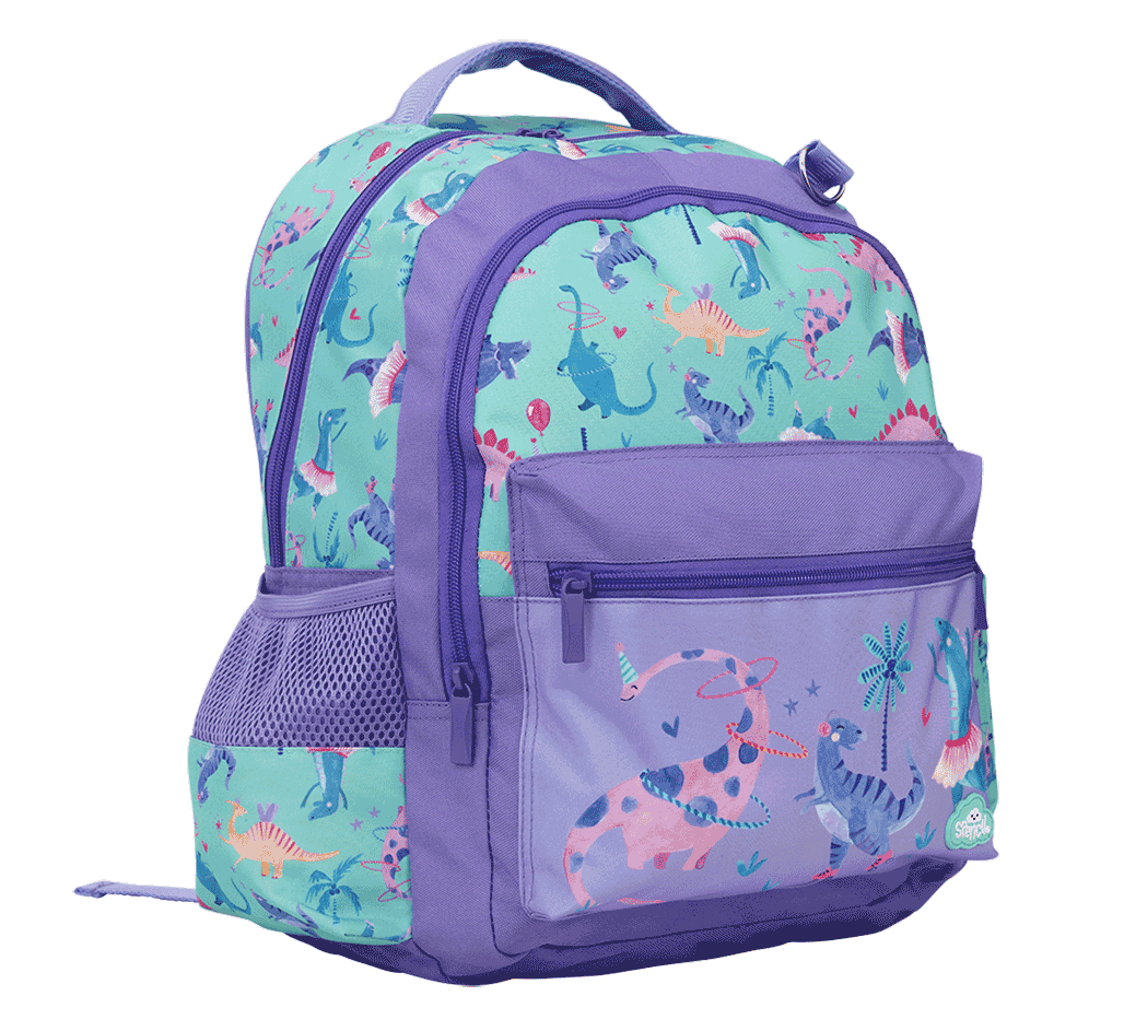 Little Kids Backpack - Roar-some: Roller-skating T-Rex’s, and hoola-hooping brontosauruses. Yep, it’s a rockin’ dino party – how ROAR-some is that?! Little kids need little products, like this perfectly sized Little Backpack for growing bodies! A new and improved design, you'll love the updated features such as a side zip pocket, D-loop for attaching bag tags or keychains and a padded top carry handle for little hands. It also sports a water bottle compartment, a compartment with laptop/tablet holder and middle zipped pocket for lunch bags and lunch boxes making this bag both super cute AND practical!