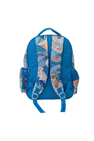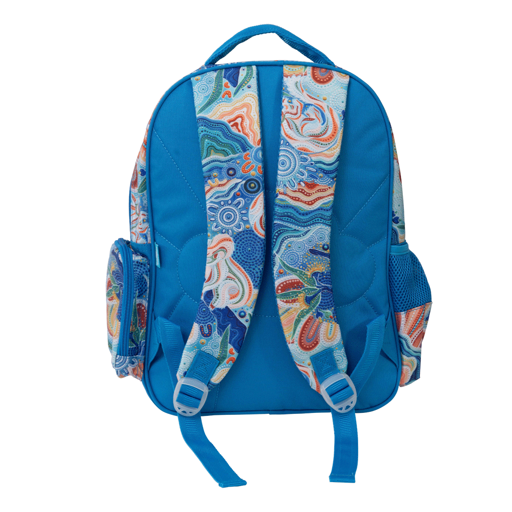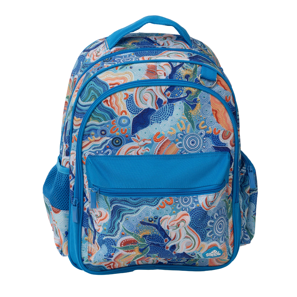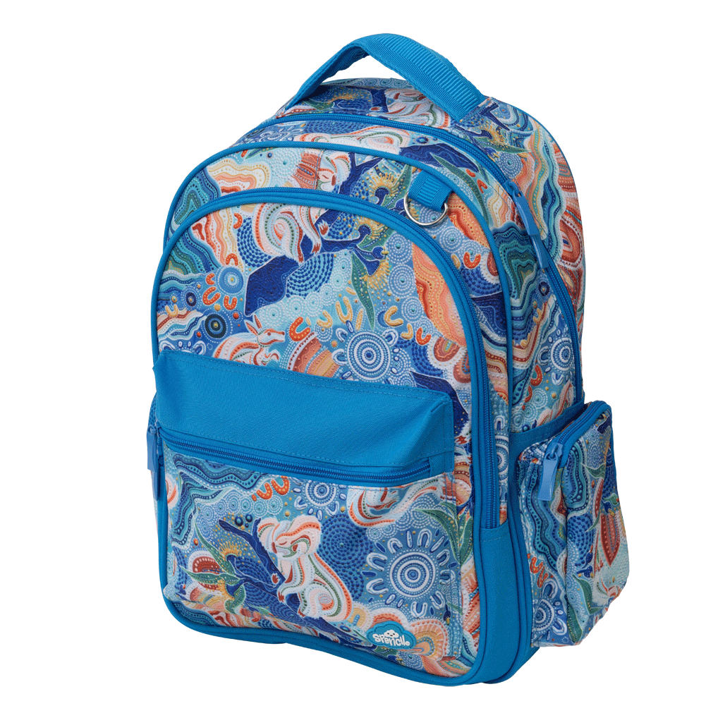 Little Kids Backpack - Wani - Wani Wantina: Wani-Wani Watina means 'To Play Side By Side' in the Kalkadoon language- a beautiful reminder of friendship and togetherness. Created by Indigenous artist sisters Brooke and Jaide Sutton for our newest Spencil Australian Indigenous Artist Collaboration, this design features charming koalas and bilbies in soft, hand-drawn detail. Each piece in the range is a celebration of wildlife and culture and a testament to the sisters' exquisite artistry. Little kids need little products, like this perfectly sized Little Backpack for growing bodies! A new and improved design, you'll love the updated features such as a side zip pocket, D-loop for attaching bag tags or keychains and a padded top carry handle for little hands. It also sports a water bottle compartment, a compartment with laptop/tablet holder and middle zipped pocket for lunch bags and lunch boxes making this bag both super cute AND practical!