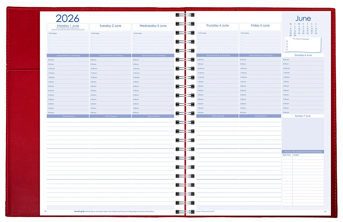 The Management Planner 2026 (Weekly) - Wiro Bound is designed for principals, assistant principals, faculty heads, and other school leaders. With its straightforward week-to-a-view layout, it provides the flexibility to plan, track, and manage responsibilities across the school year.