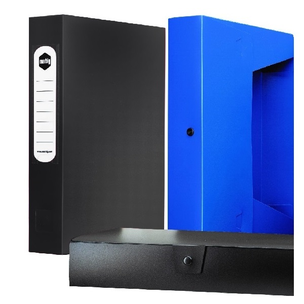 This Marbig box file is made from durable, hard-wearing black polypropylene with button closure to secure contents.