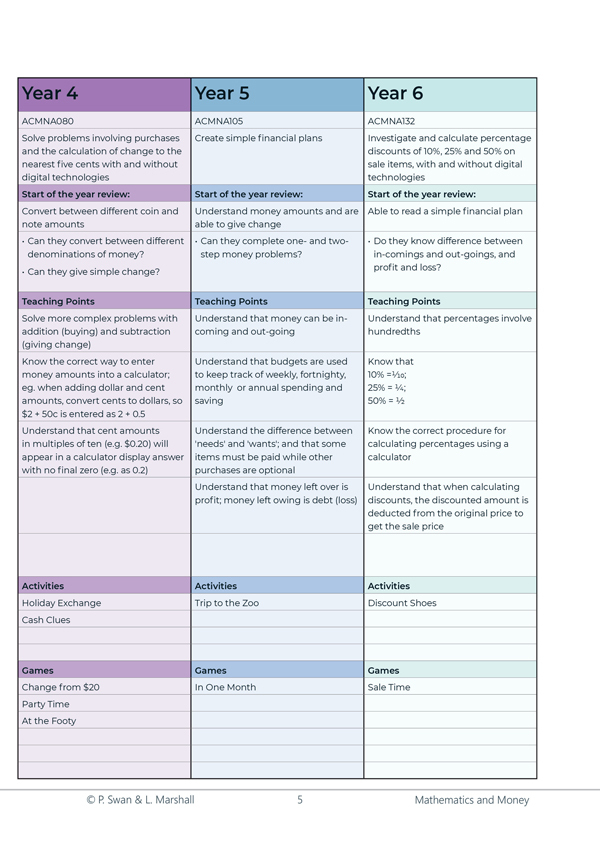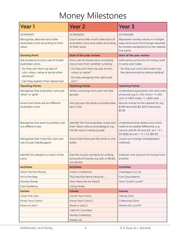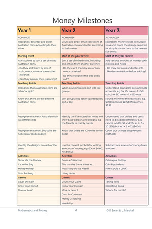 This book is designed to help children come to grips with money in an age where they rarely see a physical transaction. Participation in the games and activities contained in the book will help children develop their financial literacy as children pass through a series of money milestones.