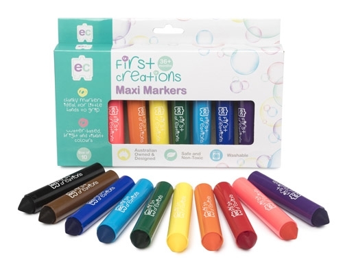 Maxi Markers are perfect for beginner drawers as they have been designed for young children to grip easily in their little hands. These non-toxic markers have sink proof nibs, are super washable and are filled with water-based, food dye inks that wash out easily in cold water. Create your artwork with thick, broad strokes or fine lines by using the nib at different angles.
