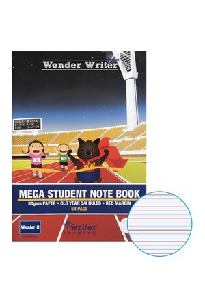 This Wonder Writer Mega Student Notebook features ruled pages that ensure your writing stays neat and tidy. The mega-size gives you more room to do your homework and write notes, while the strong cardboard cover has a quirky and colourful design.