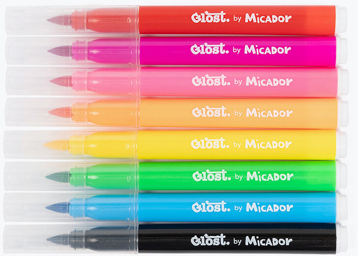 These stunning Brush Markers are available in 8 daring colours, ready for you to paint the town rainbow! Brush off the blues and tap into your creativity. Vibrant ink goes down smoothly and stays bright on paper. Packaged in a FSC™ Mix certified cardboard box, these 8 crafty markers are a pencil case must-have.