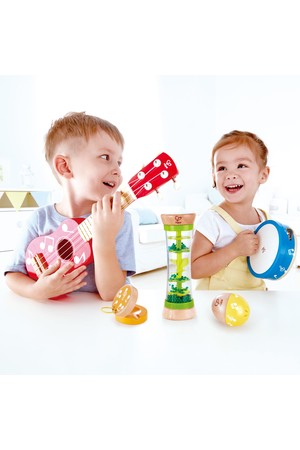 Start making your own music with this beginner’s instrument set! Learn to play the ukulele, tambourine, clapper, rattle and rainmaker yourself – then bring your friends together and start a band.