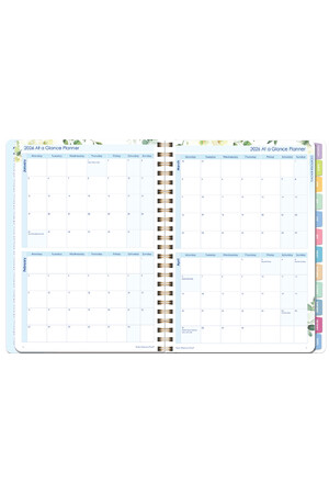 - Double-page monthly planners with tabs