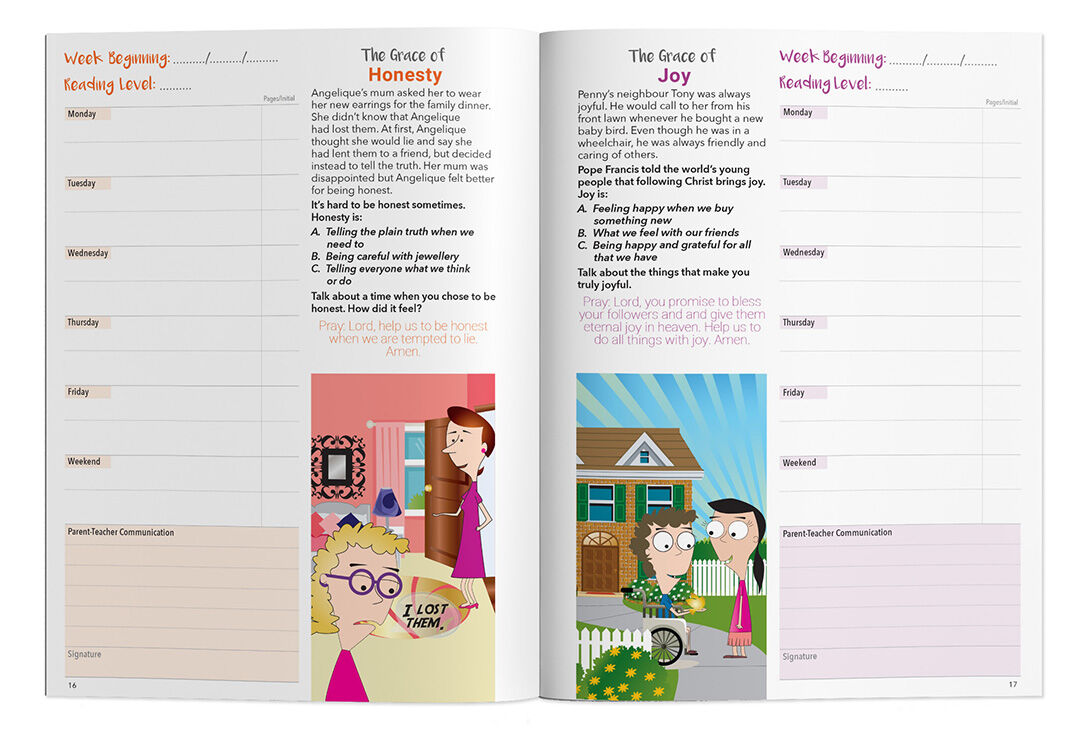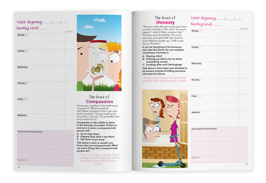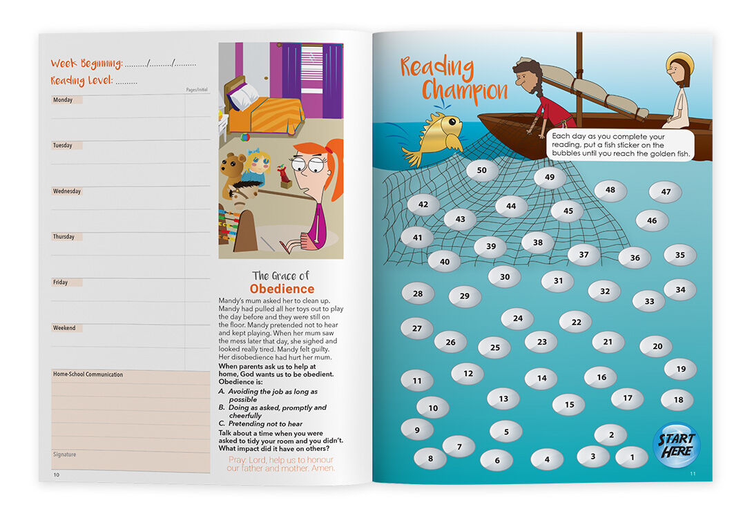 With its flexible, non-dated layout, this resource makes it easy to track progress, celebrate achievements, and build strong reading habits at home and in the classroom. Alongside reading records, children are introduced to Catholic values, Bible stories, and fun activities that enrich their literacy journey.