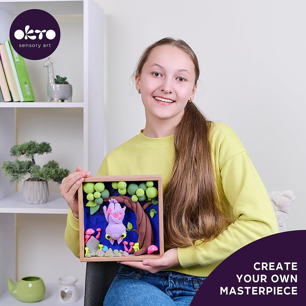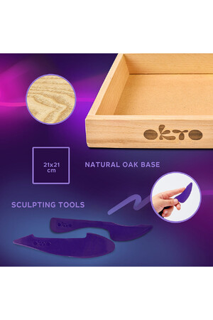 Give yourself or your loved ones time for a creative flight with a new series of fantasy worlds from OKTO. The set contains everything you need to work: a natural wood base, a set of air clay, a handy instruction booklet, and tools for work. A video tutorial will show you how to work with each element.