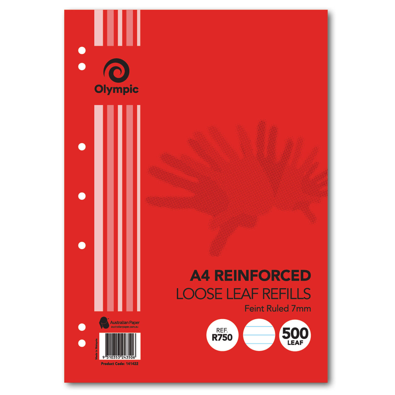 Olympic Loose Leaf Reinforced Refills - A4 Ruled 7mm (500 Leaf)