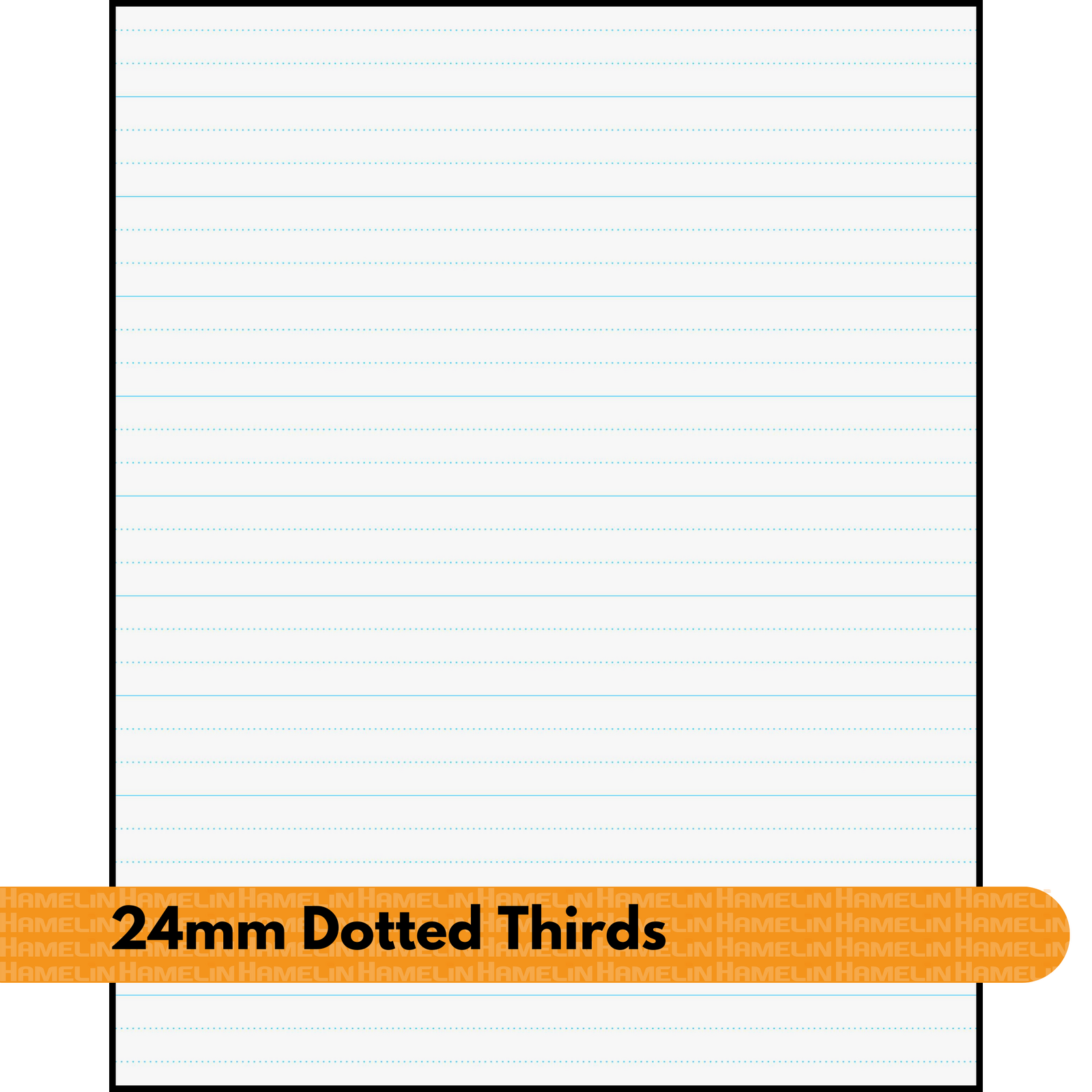 - Special dotted thirds rulings assist younger students in developing their writing technique