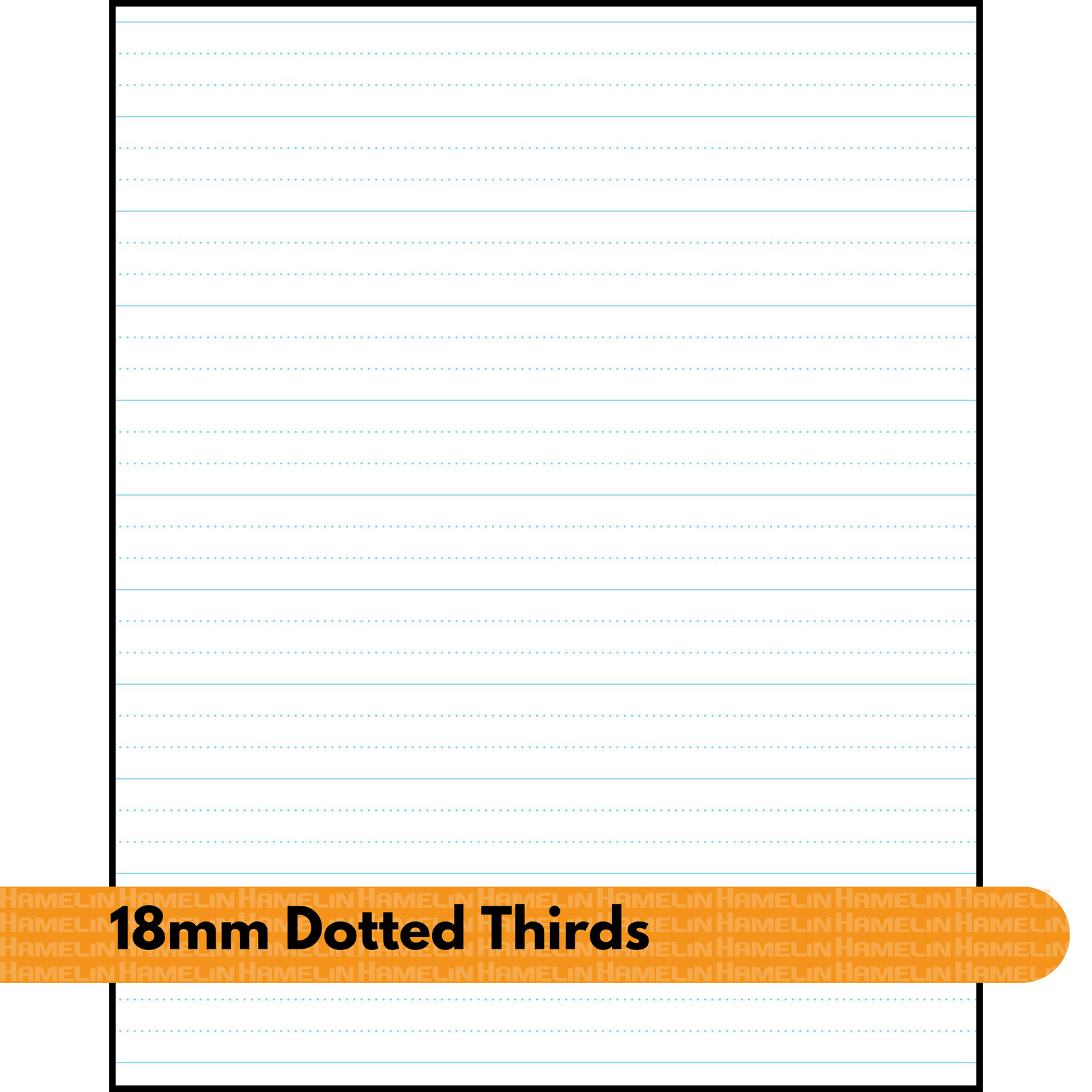 - Special dotted thirds rulings assist younger students in developing their writing technique