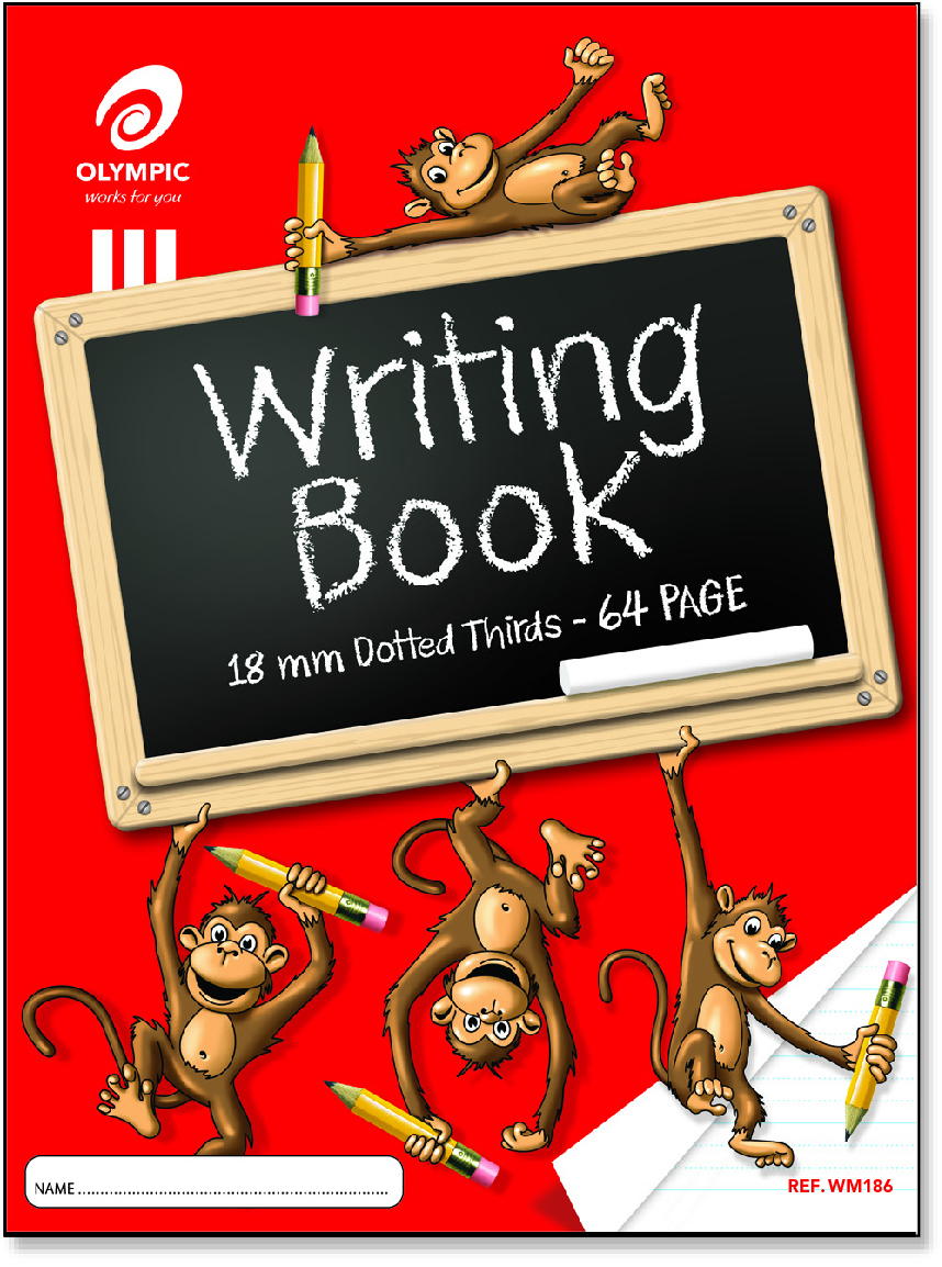 Olympic Writing Book (Monkeys) - 335x240mm, 18mm Dotted Thirds: 64 Pages (Single Book).