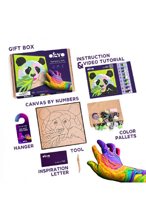 Energetic Panda and Eucalyptus is a great choice for the adventurous young traveler. Gentle fresh tones of the picture will refresh any children’s room. A set for creating a picture by numbers with air clay is a time for an easy start into the world of creativity. The simple color plot is easy for children’s fingers to work with. The set includes: a solid base in a 29*29cm frame, a bag with colored sticks of air clay, a tool for working with details and everything you need to create a creative atmosphere. Art clay will help keep children’s attention and interest in work. The printed outline of the drawing with color markings will help you create a wonderful product without much effort.
