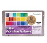 Studio Pearlescent Watercolours 18s are vibrant metallic pigments in semi-moist watercolour pans - just add water! These luscious, intermixable semi-wet watercolours -allows the student or artist to enjoy the quality of artist tube paint, but with the convenience and value of a portable palette set. These watercolours are semi-dried, contain less filler and are loaded with metallic pigment, which results in a stronger, clean and more saturated colour.