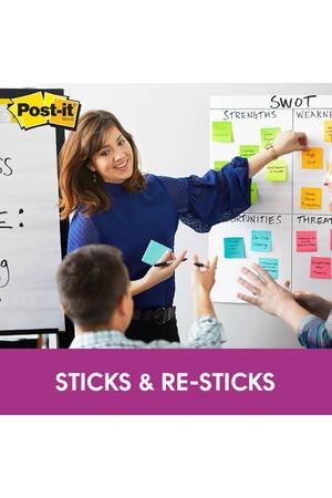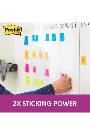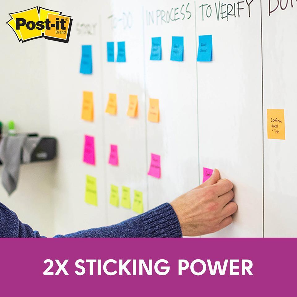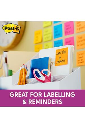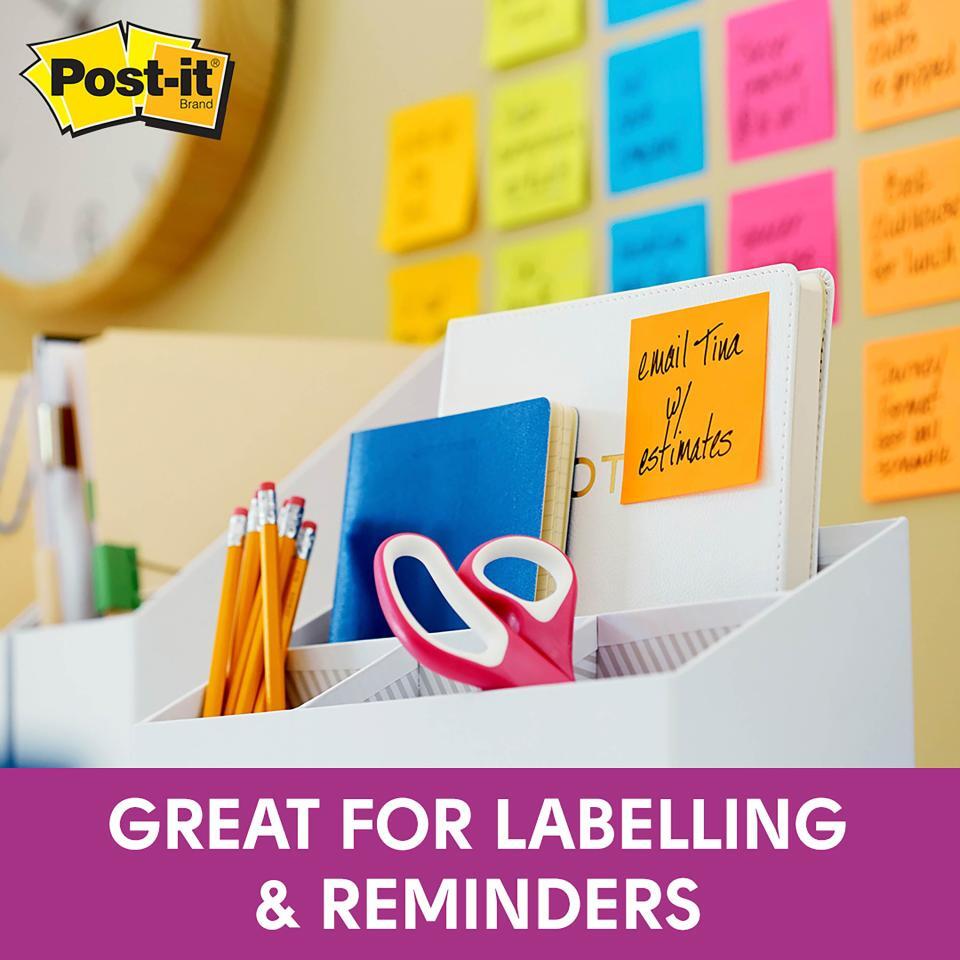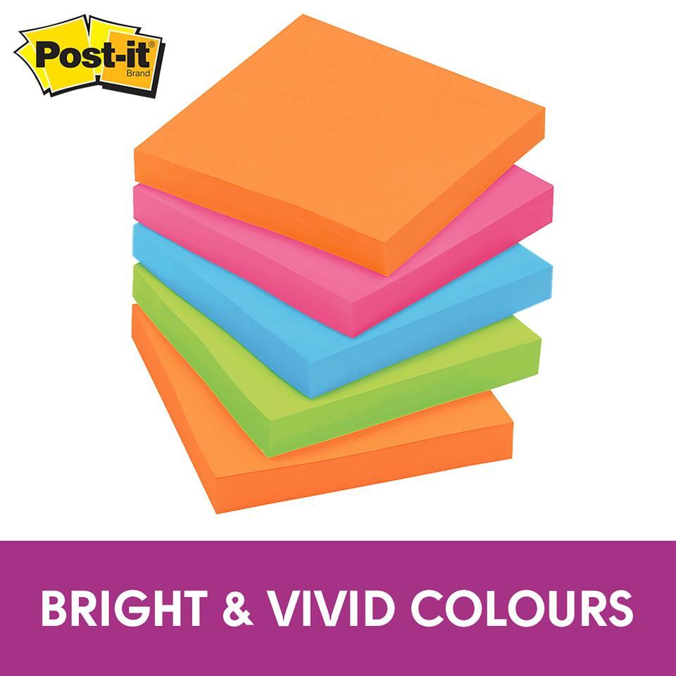 These Post-it Super Sticky Notes can be used to leave notes, reminders, lists and more around the home or workplace. The adhesive is super sticky so they will adhere to a variety of surfaces but can still be easily removed and repositioned. They are bright in colour so you can be confident that your messages will be seen.