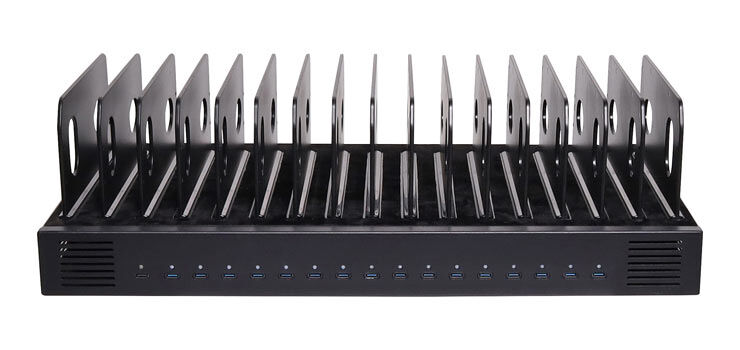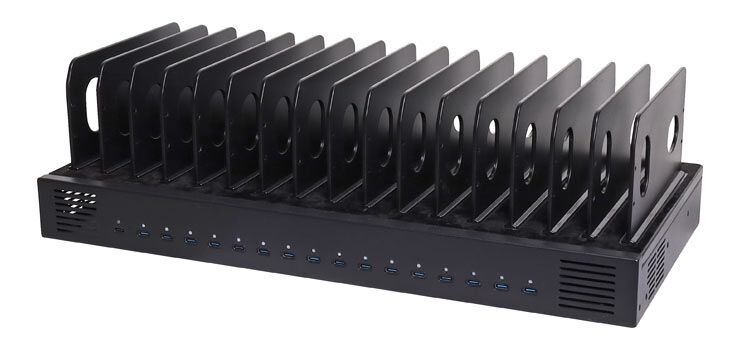 This 16-port USB C charger allows you to charge up 16 USB-C devices at once with a 1000W output. Supporting Power Delivery 2.0 & 3.0 for fast, efficient charging, it’s perfect for laptops, tablets, and smartphones. Built with intelligent temperature-controlled fans, full metal housing, and comprehensive safety protections, this charger delivers reliable, high-capacity performance for schools, offices, or shared workspaces.