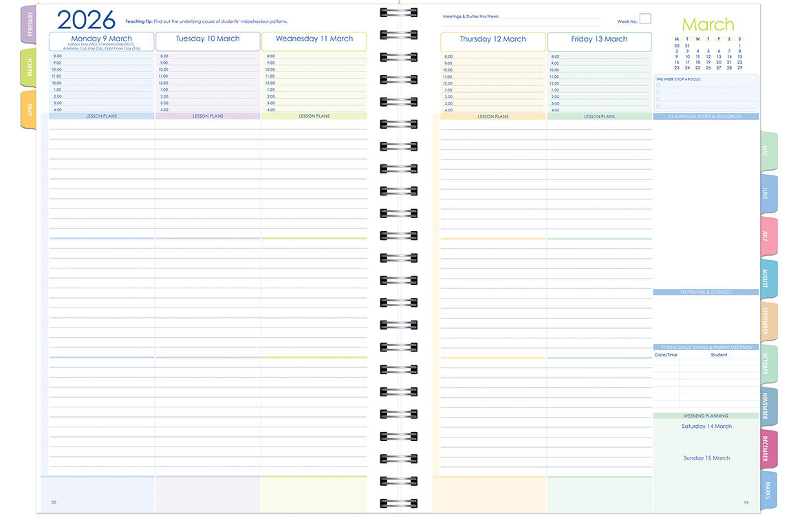 With its week-to-a-view layout, our Primary Weekly Limited Edition Planner features a 32-page colour teacher resource section, full-colour design, teaching tips, and monthly tabs to help you stay organised throughout the school year.