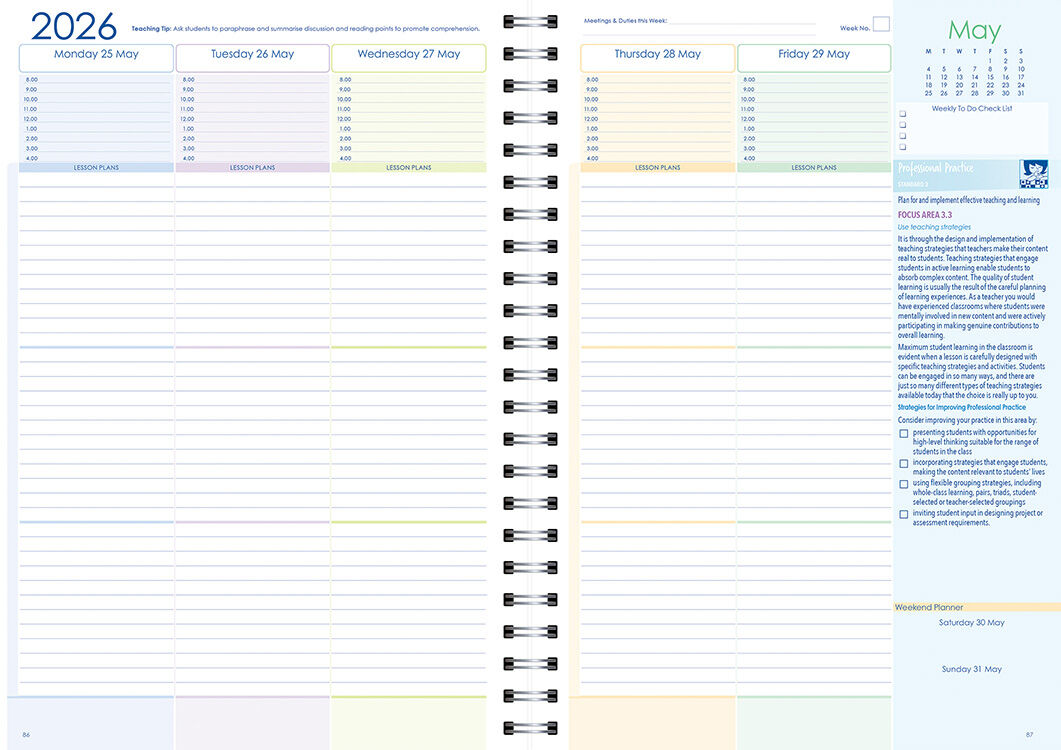 The Professional Practice Secondary Planner 2025 (Weekly) - Wiro Bound is designed to support teachers with strategies that strengthen both professional practice and student wellbeing. With its week-to-a-view layout, it combines practical planning tools with evidence-based approaches for effective teaching and resilience in the classroom.