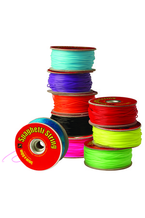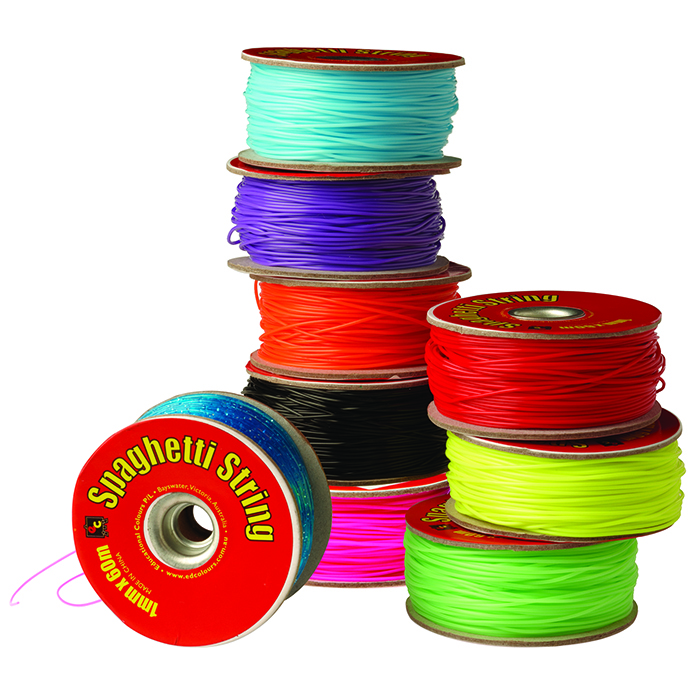 Colourful, pliable plastic tubing for stringing and plaiting activities.