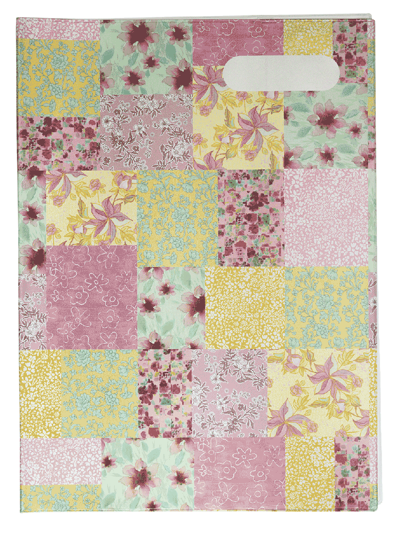 Scrapbook Cover - Blooming Beauty 1: This pretty patchwork is a floral delight, a tapestry of blooms, so sunny and bright! Don't wrestle with pesky, sticky book covering when you can cover books in just 10 seconds with this reusable, slip-on school book cover! It's a total game-changer. In Scrapbook size, it fits larger scrapbooks sized 335mm x 245mm or less, and is made from non-toxic certified PVC Reach material. It will surely make back to school easy for you and fun for the kids!