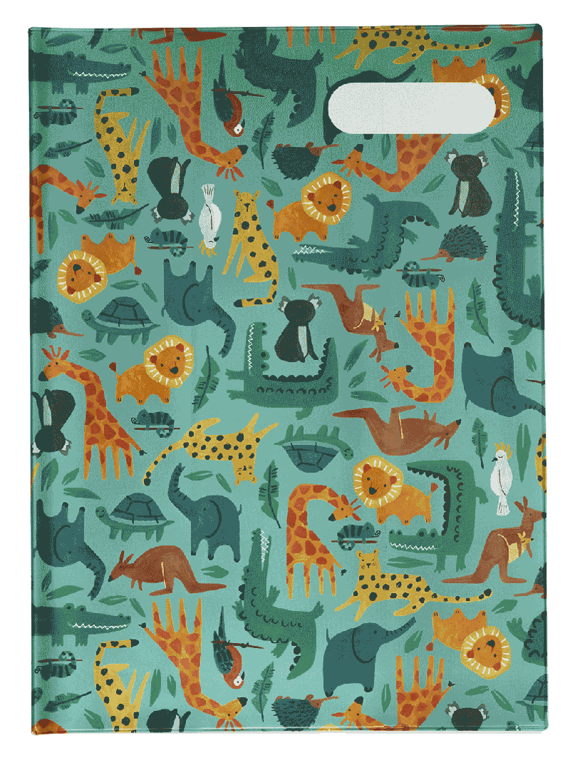 Scrapbook Cover - Safari Puzzle 1: A wonderous world of animals from around the globe will make them smile – from cute koalas to the snappy crocodile! Yes it’s a puzzle…safari-style! Perfect for little explorers, aged 5-7. Don't wrestle with pesky, sticky book covering when you can cover books in just 10 seconds with this reusable, slip-on school book cover! It's a total game-changer. In Scrapbook size, it fits larger scrapbooks sized 335mm x 245mm or less, and is made from non-toxic certified PVC Reach material. It will surely make back to school easy for you and fun for the kids!