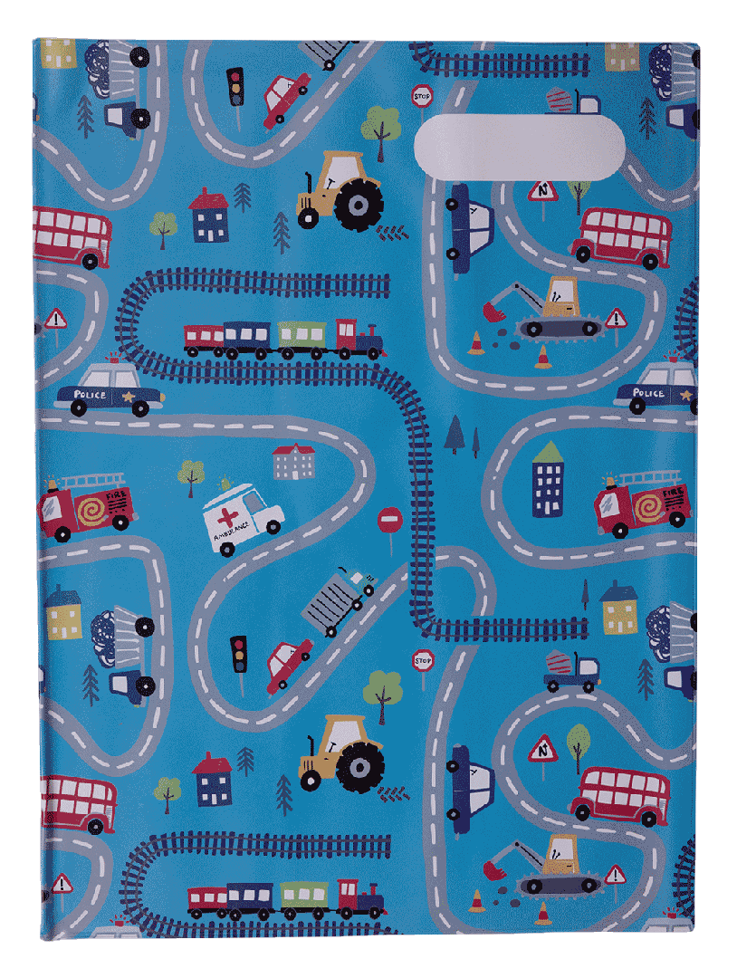 Scrapbook Cover - Tiny Town: Welcome to Tiny Town! This whimsical design is a colourful map of a bustling mini-metropolis. Perfect for the little urban explorer with big dreams of adventure and discovery! Don't wrestle with pesky, sticky book covering when you can cover books in just 10 seconds with this reusable, slip-on school book cover! It's a total game-changer. In Scrapbook size, it fits larger scrapbooks sized 335mm x 245mm or less, and is made from non-toxic certified PVC Reach material. It will surely make back to school easy for you and fun for the kids!