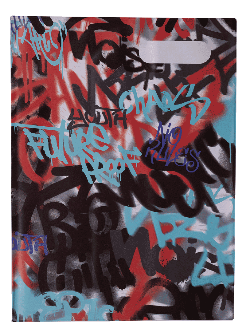 Scrapbook Cover - Urban Scrawl: Meet Urban Scrawl - the coolest design in town! Bursting with vibrant graffiti-inspired patterns in electrifying hues, this collection is perfect for kids who colour outside the lines and make every day an adventure. Don't wrestle with pesky, sticky book covering when you can cover books in just 10 seconds with this reusable, slip-on school book cover! It's a total game-changer. In Scrapbook size, it fits larger scrapbooks sized 335mm x 245mm or less, and is made from non-toxic certified PVC Reach material. It will surely make back to school easy for you and fun for the kids!