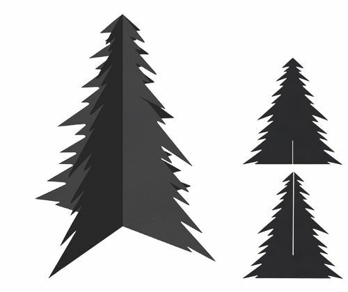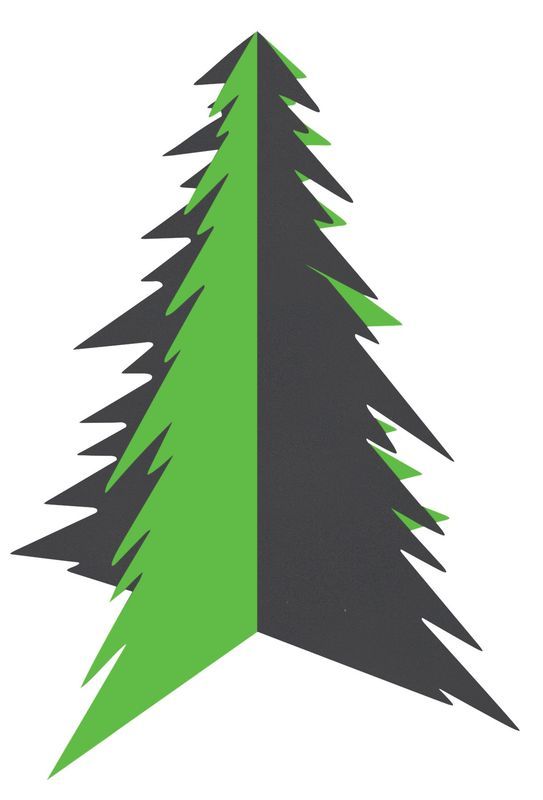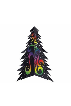 Pre-cut 3D Christmas trees. Black coating over multicoloured paper. When assembled, trees are free standing. 20 scratch tools included.