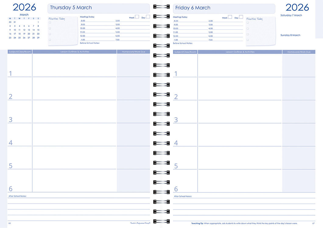 The Secondary 6-Period Planner 2026 (Daily) - Wiro Bound helps teachers plan their day with precision and ease. With its detailed day-to-a-page layout, it’s designed to keep lessons, meetings, and priorities organised throughout the school year.