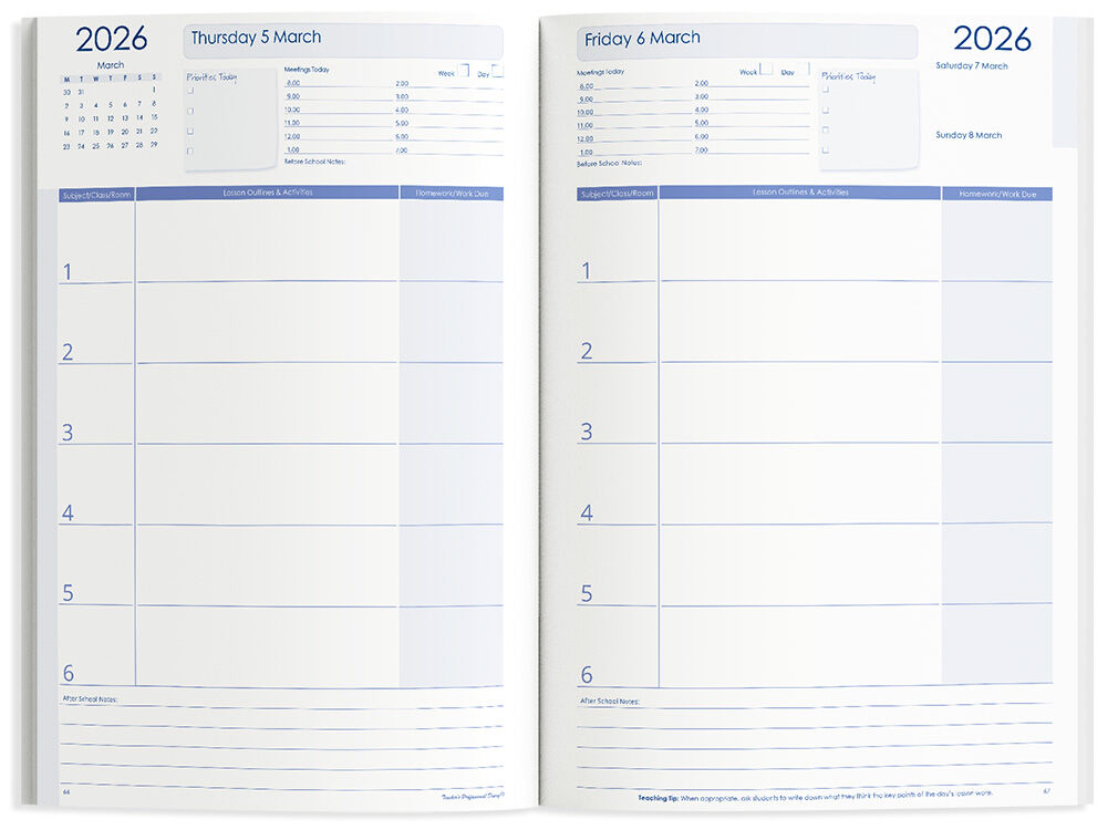 - 6 period day-to-a-page planner