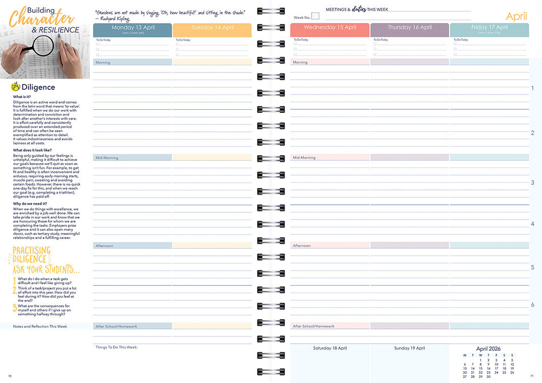 The Secondary Building Character and Resilience (BCR) Planner 2026 (Weekly) is designed as a standalone planner or as a supplementary resource, providing in-depth weekly explanations of good habits with accompanying questions and discussion prompts. It helps teachers guide students in building resilience and positive character throughout the school year.