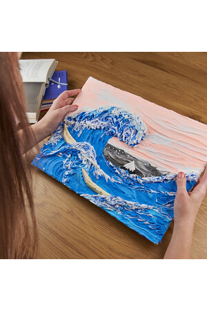 Feel the ocean's rhythm with our Sensory Art Creative Set: Big Wave in Kanagawa. Glide your fingertips across the canvas, conjuring waves that rise and fall beneath a breathtaking peach-white sky. This evocative scene captures the essence of Japan's dynamic landscape, inviting you to savour its beauty.