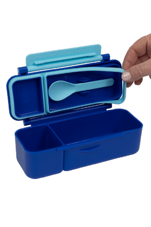 Made from food-safe materials free of BPA, PVC, and phthalates, it’s perfect for worry-free snacking. With leak-proof sections, a removable silicone seal for easy cleaning, and a dishwasher-friendly build, it’s as practical as it is durable — ready to stand up to the daily demands of school, kindy, or day care. The kid-friendly latch and clip-in spoon make it ideal for little hands and on-the-go adventures.