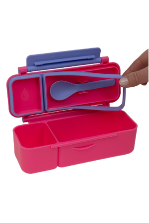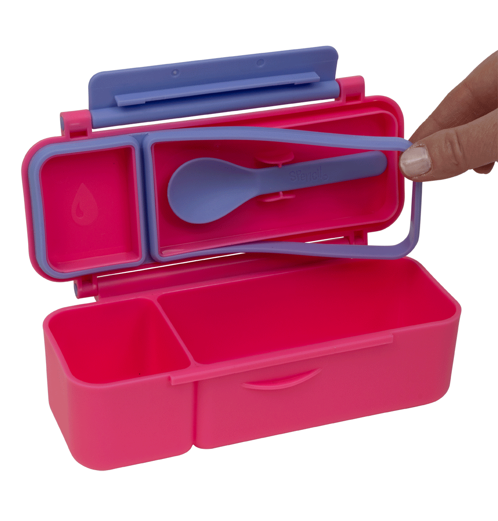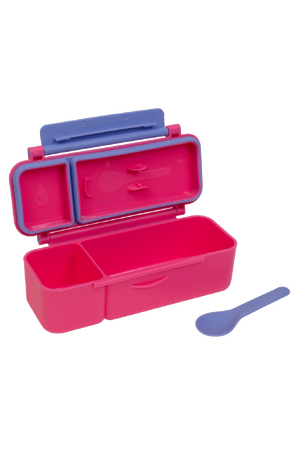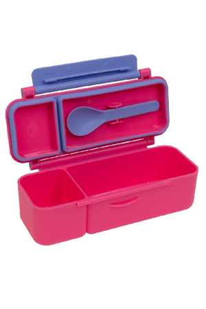Made from food-safe materials free of BPA, PVC, and phthalates, it’s perfect for worry-free snacking. With leak-proof sections, a removable silicone seal for easy cleaning, and a dishwasher-friendly build, it’s as practical as it is durable — ready to stand up to the daily demands of school, kindy, or day care. The kid-friendly latch and clip-in spoon make it ideal for little hands and on-the-go adventures.