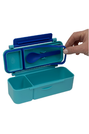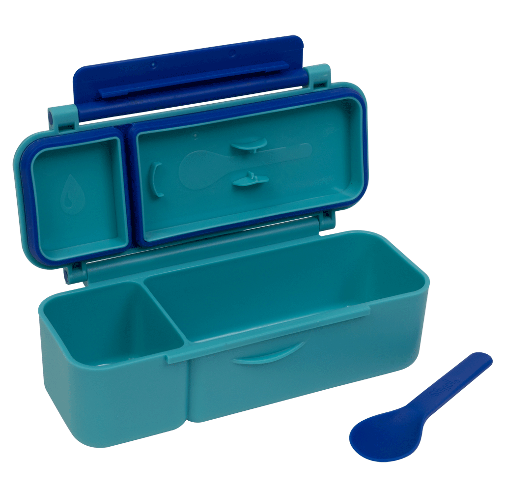 Made from food-safe materials free of BPA, PVC, and phthalates, it’s perfect for worry-free snacking. With leak-proof sections, a removable silicone seal for easy cleaning, and a dishwasher-friendly build, it’s as practical as it is durable — ready to stand up to the daily demands of school, kindy, or day care. The kid-friendly latch and clip-in spoon make it ideal for little hands and on-the-go adventures.