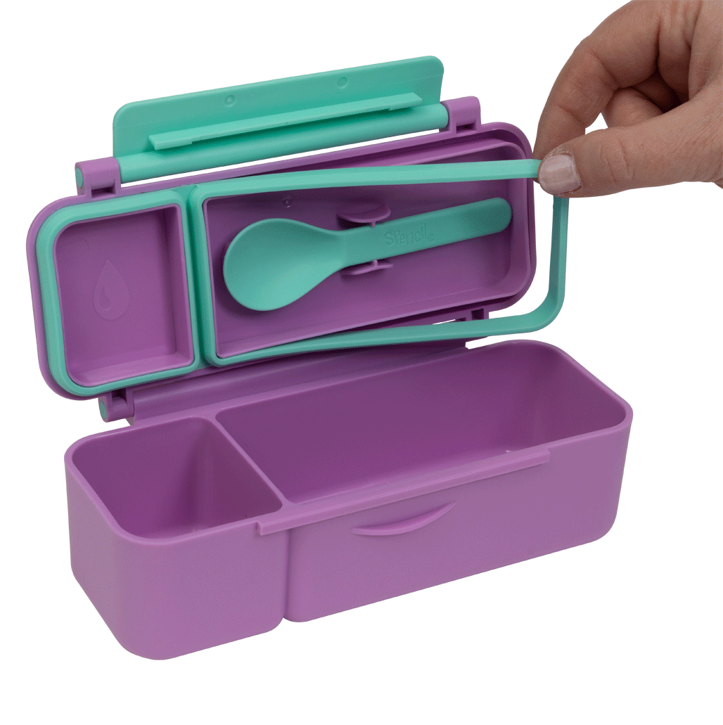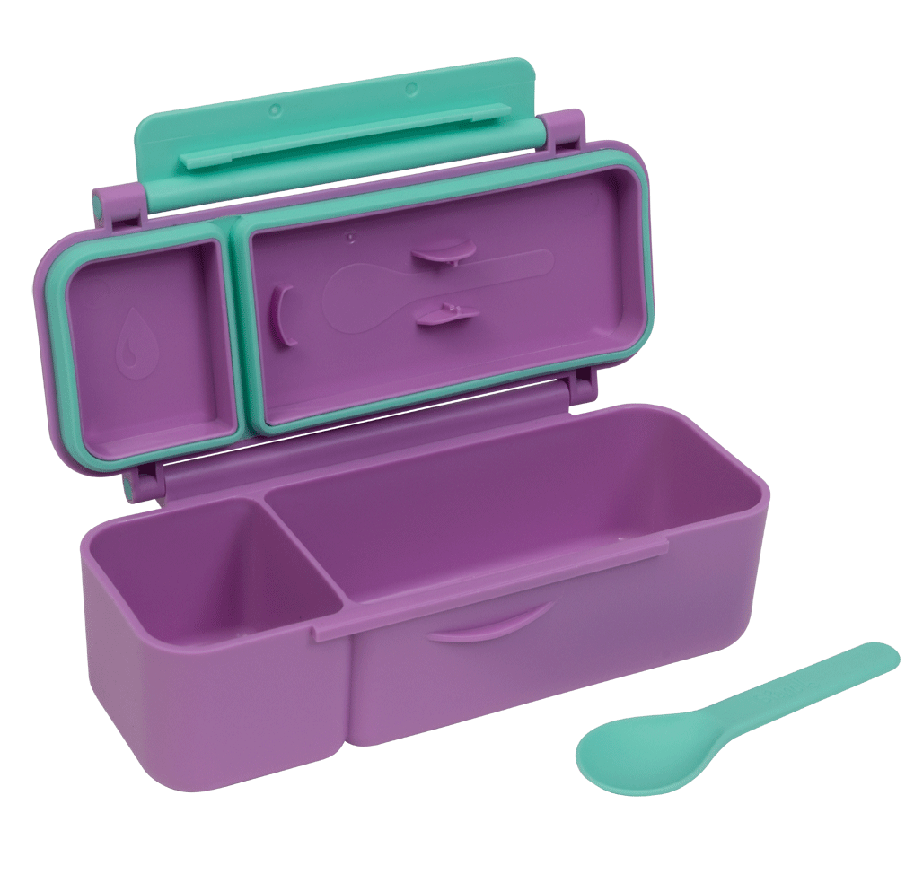 Made from food-safe materials free of BPA, PVC, and phthalates, it’s perfect for worry-free snacking. With leak-proof sections, a removable silicone seal for easy cleaning, and a dishwasher-friendly build, it’s as practical as it is durable — ready to stand up to the daily demands of school, kindy, or day care. The kid-friendly latch and clip-in spoon make it ideal for little hands and on-the-go adventures.