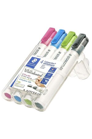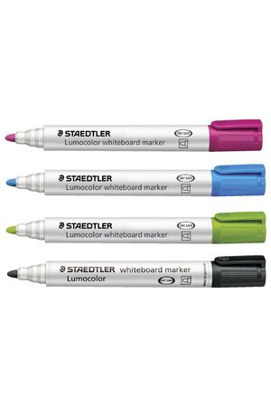 These Staedtler Lumocolour Whiteboard Markers are a great option for marking a variety of dry erase surfaces, including whiteboards, glass and porcelain. The markers feature dry safe ink which allows you to leave the cap off for days before they dry out. This pack comes with 4 bright coloured markers.