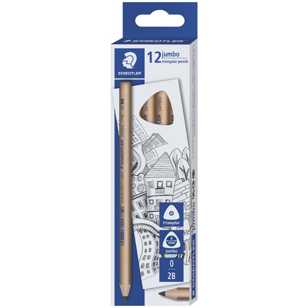 Each Staedtler Triangular Pencil contains graphite lead ideal for writing, drawing and sketching applications. They're large in size making it ideal for small hands while also promoting correct grip and use. The 2B lead is easy to sharpen and can be removed easily using an eraser.