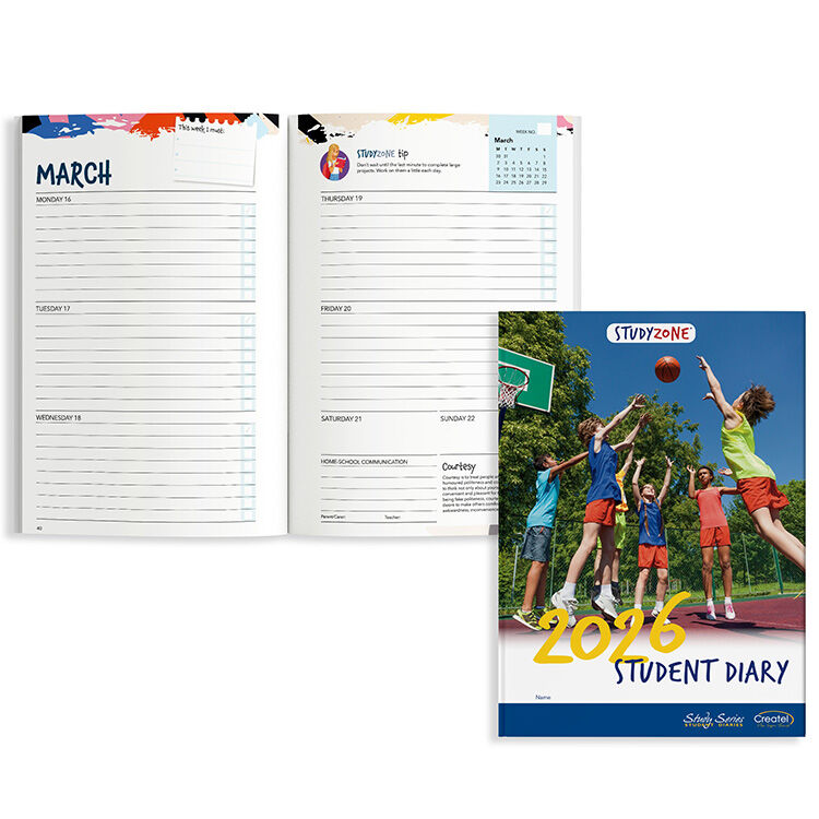 StudyZone 2026 (Years 7–12) Student Diary is designed to keep students in the Zone with a simple, practical, and effective way to manage study and homework. Best suited for Years 7–12, it balances organisation with valuable student resources to help them navigate the school year with confidence.