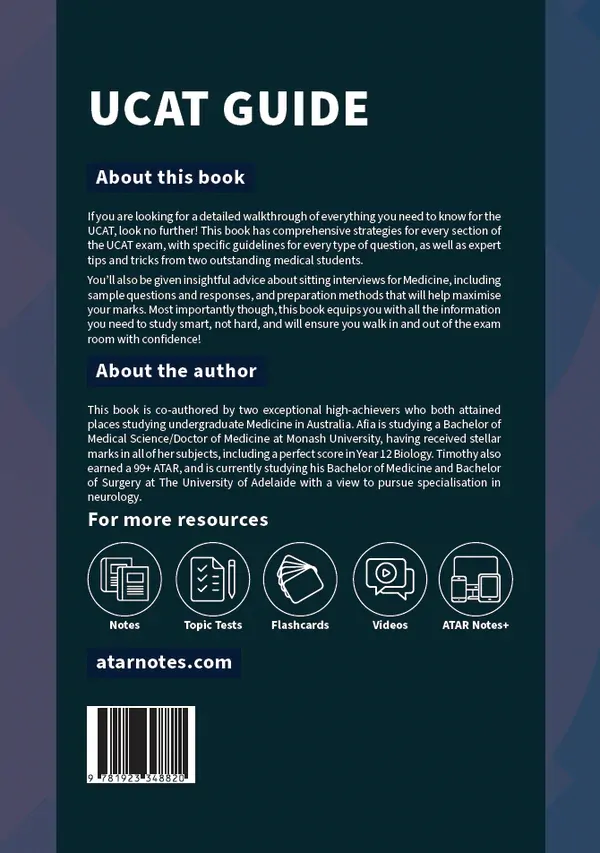 Our two authors are much-loved contributors from the forum community and are both currently studying undergraduate Medicine. Afia is studying a Bachelor of Medical Science/Doctor of Medicine at Monash University, having received stellar marks in all of her subjects, including a perfect score in Year 12 Biology. Timothy also earned a 99+ ATAR, and is currently studying his Bachelor of Medicine and Bachelor of Surgery at The University of Adelaide with a view to pursuing specialisation in neurology.
