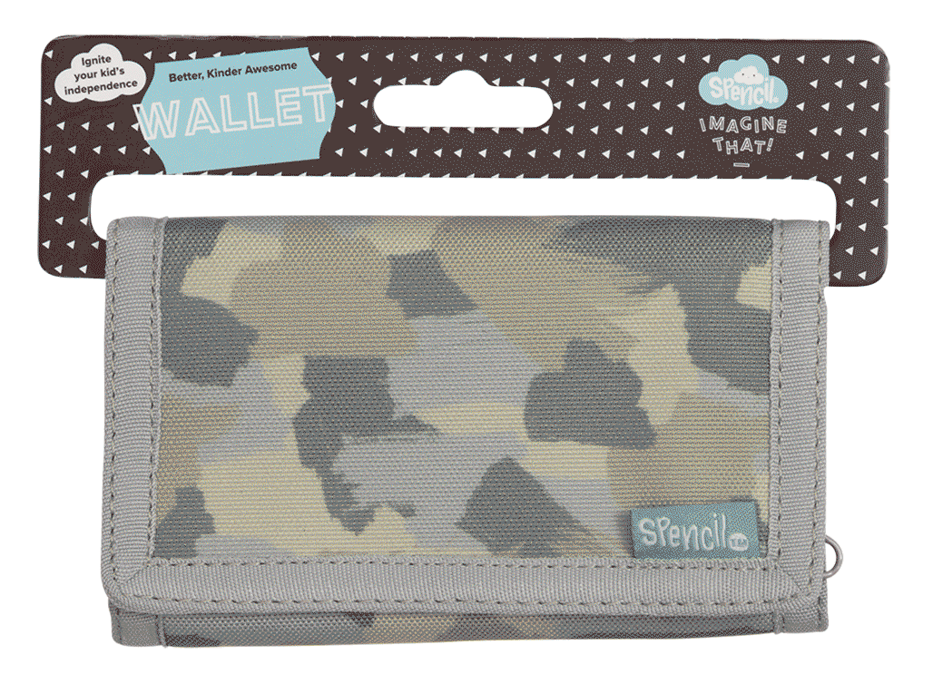 Slimline tri-fold design, the ideal size for little pockets Mesh pocket for ID or bus pass Zipped coin section Plenty of pockets for cards, papers and notes Large note money section for the bigger stuff Gorgeously designed, in a selection of your kids' favourite Spencil designs!