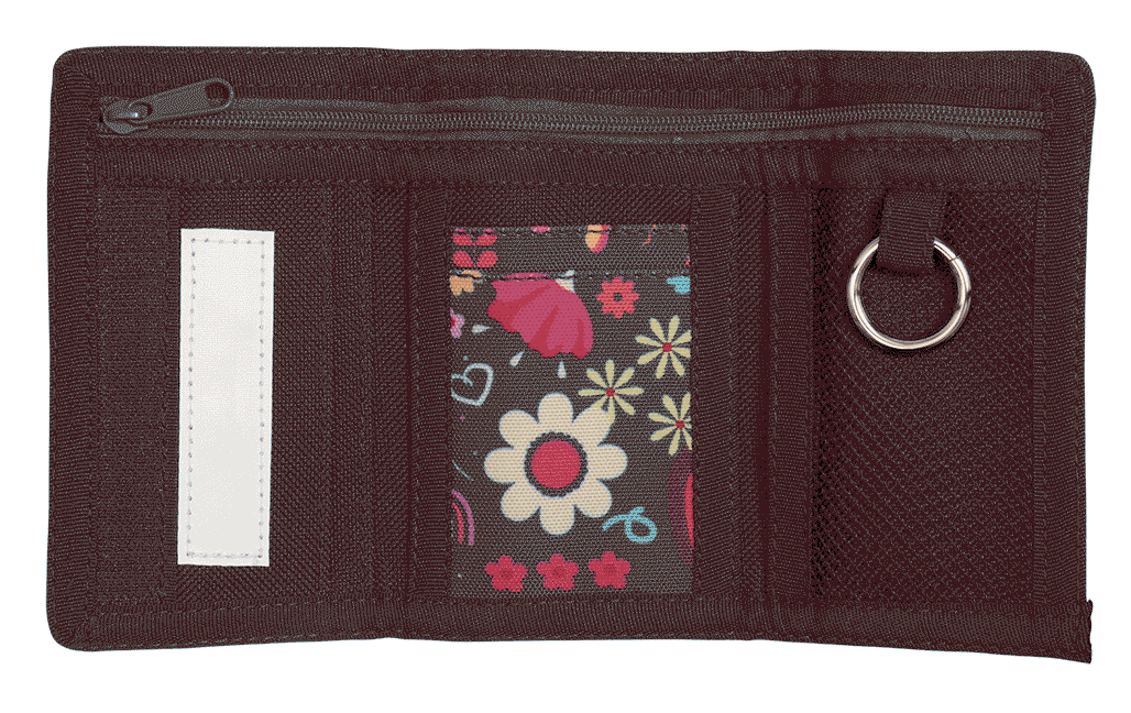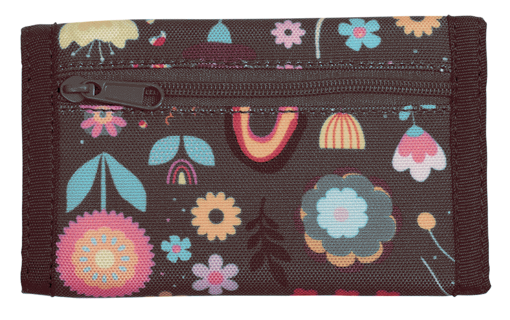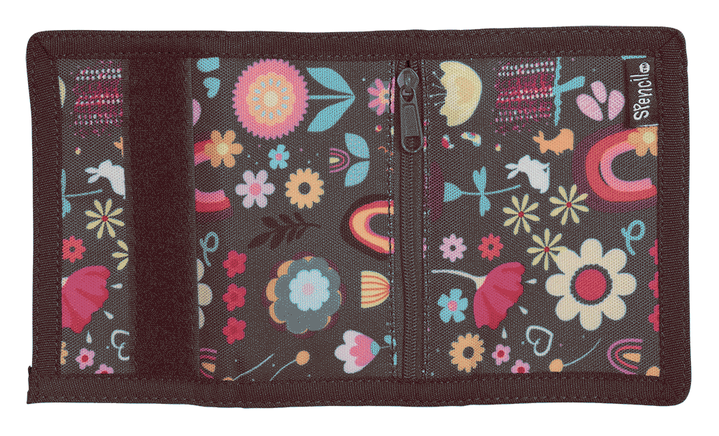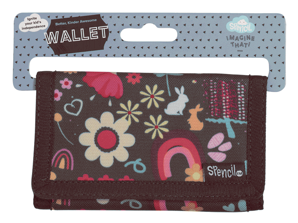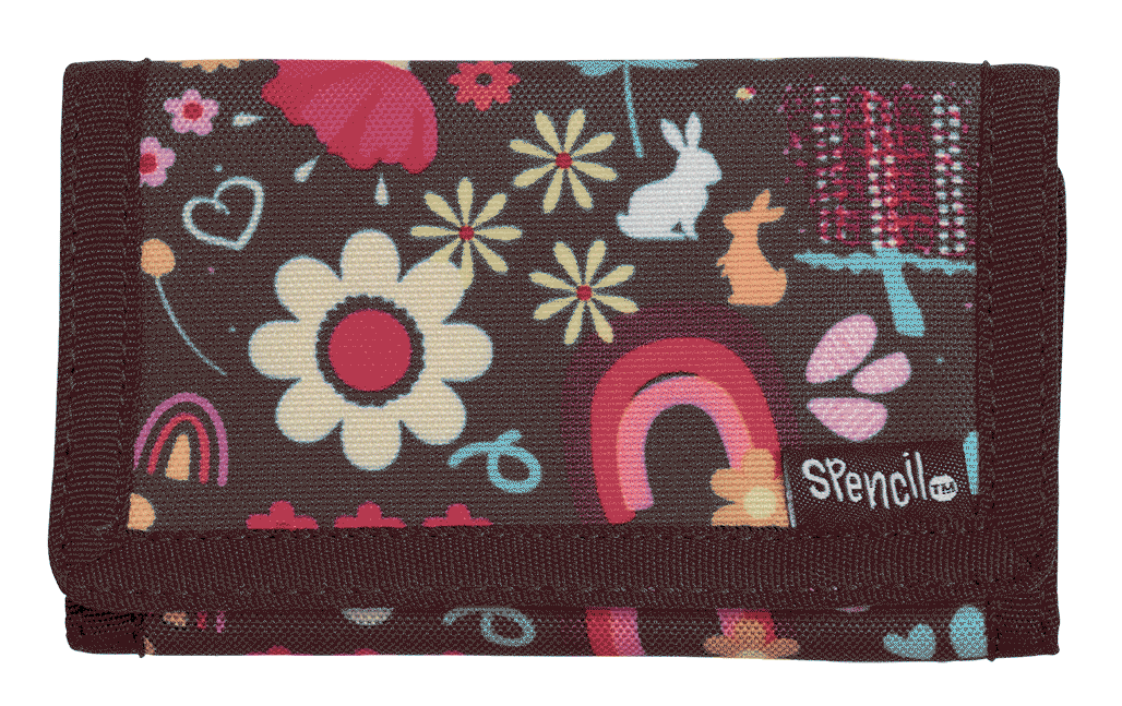 Wallet - Flower Power: The Spencil wallet is the perfect wallet for kids exerting their independence! In a threefold, velcro closure design, kids' most important items are easy to access with just the right zips and pockets. With handy sections for storing their ID, notes, coins and cards, as well as an O-ring for attaching keys or other valuables, it's just the right size for their pockets or to clip inside their backpack. In a range of their favourite designs, this will be an essential addition to their school and every day kit!