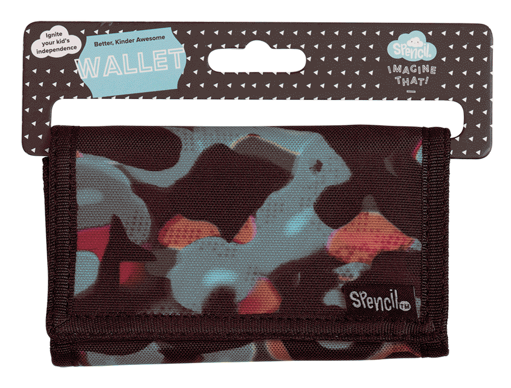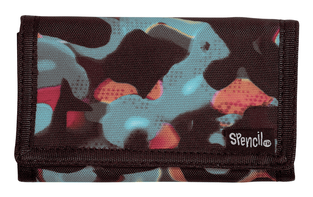 Wallet - Virtual Camo: The Spencil wallet is the perfect wallet for kids exerting their independence! In a threefold, velcro closure design, kids' most important items are easy to access with just the right zips and pockets. With handy sections for storing their ID, notes, coins and cards, as well as an O-ring for attaching keys or other valuables, it's just the right size for their pockets or to clip inside their backpack. In a range of their favourite designs, this will be an essential addition to their school and every day kit!