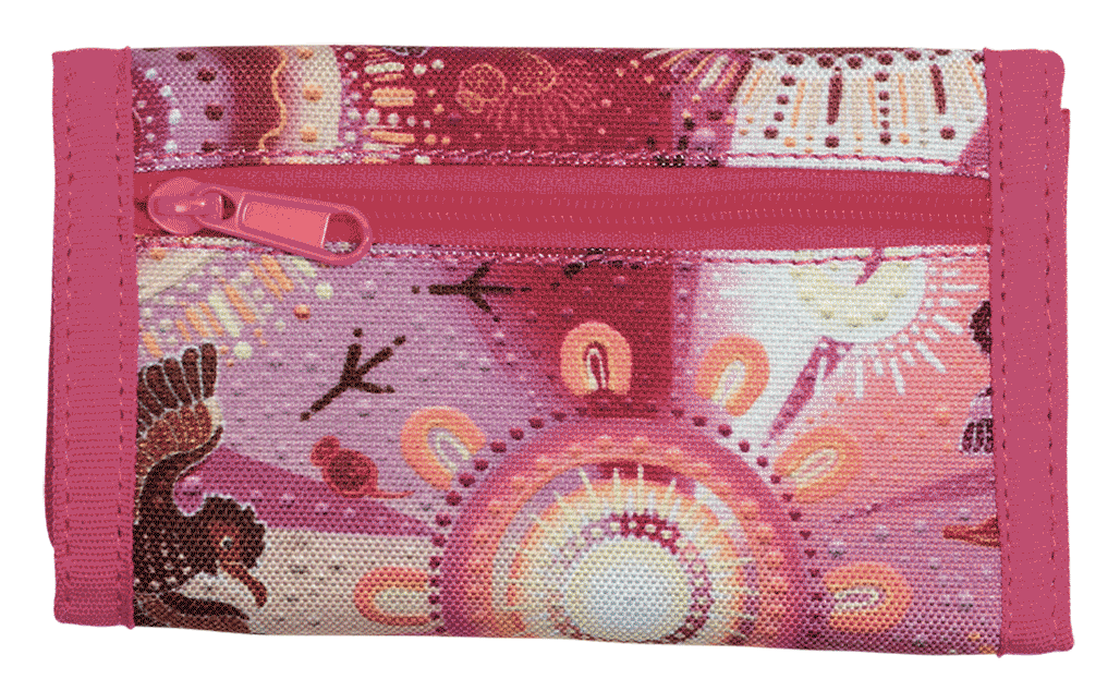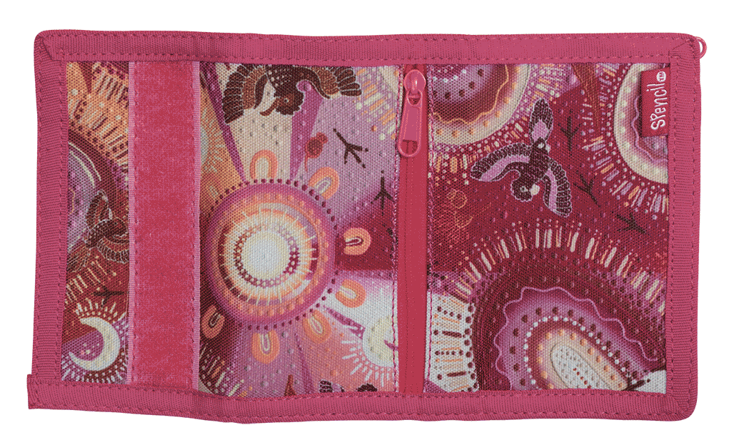 Wallet - Yarrawala: Yarrawala is the original painting of then 16 year old emerging Kalkadoon Aboriginal artist Brooke Sutton, produced in collaboration with Spencil. This is Spencil’s first ever artist collaboration and we are over the moon that Yarrawala is the result. We searched far and wide for an artist and Brooke epitomises everything we could want in a collaboration of this kind.