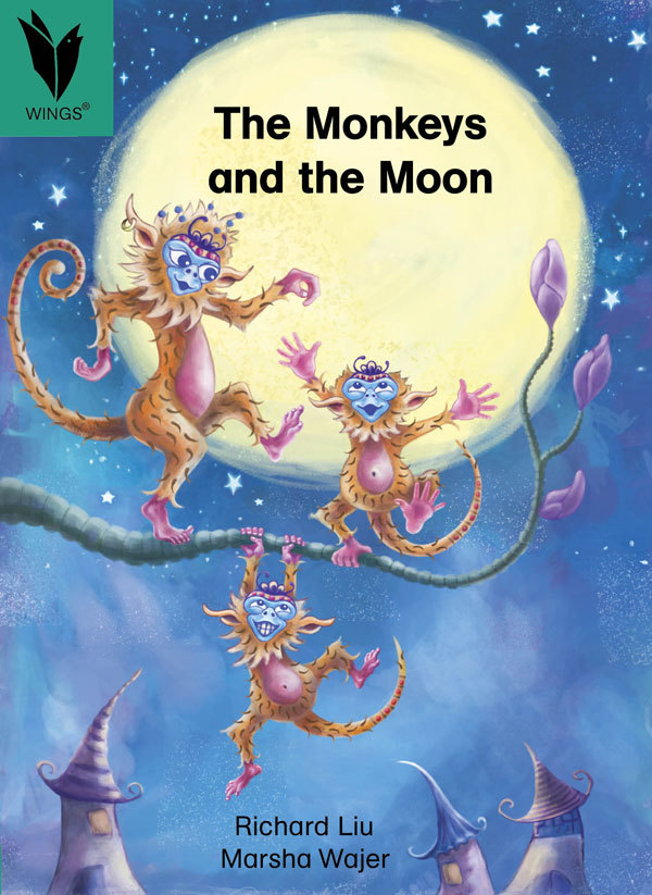 The moon has fallen into the well! The baby monkey tells the older monkeys. So the monkeys work out a plan. What will they do?