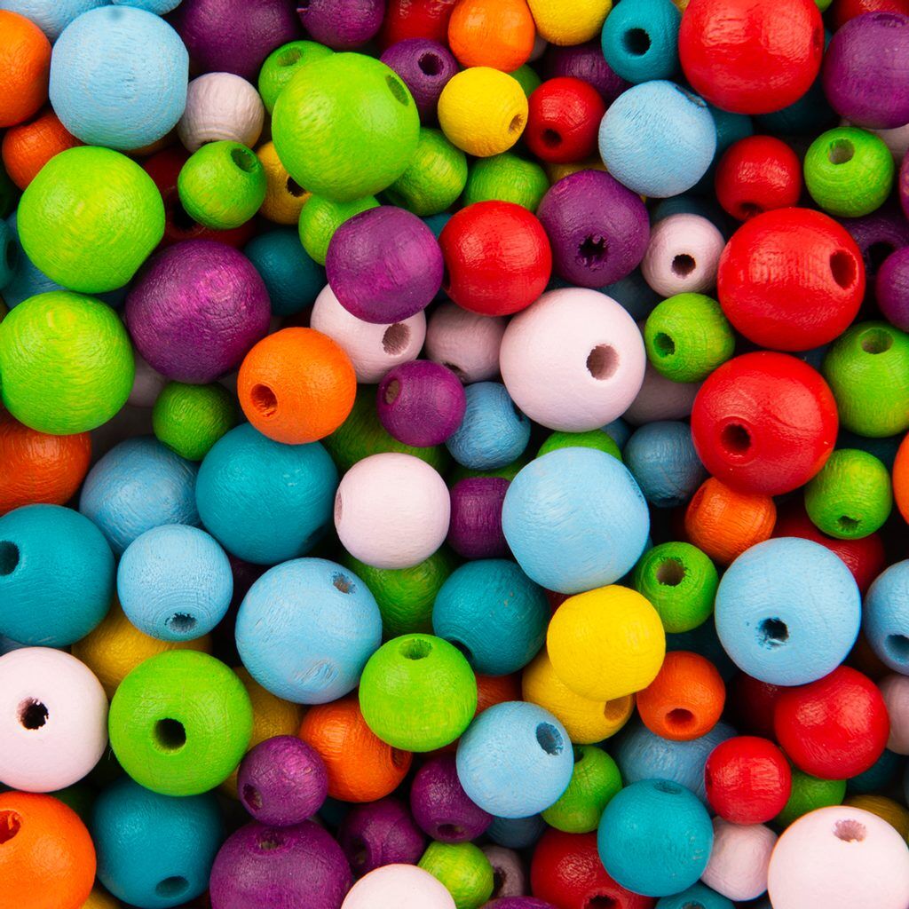 Wooden Beads - Assorted Colours (1 kg) suitable for a variety of art and craft applications.