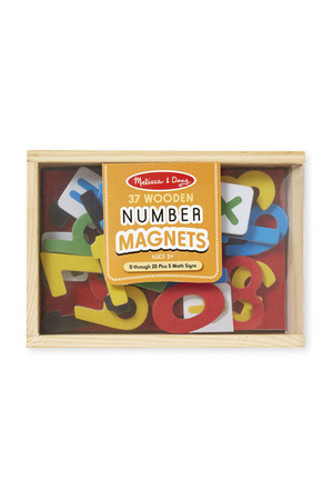 Enough numerals to count from zero through twenty AND five math signs in a convenient wooden case. 37 colourful magnetic pieces can help children learn their numbers and solve basic math problems.