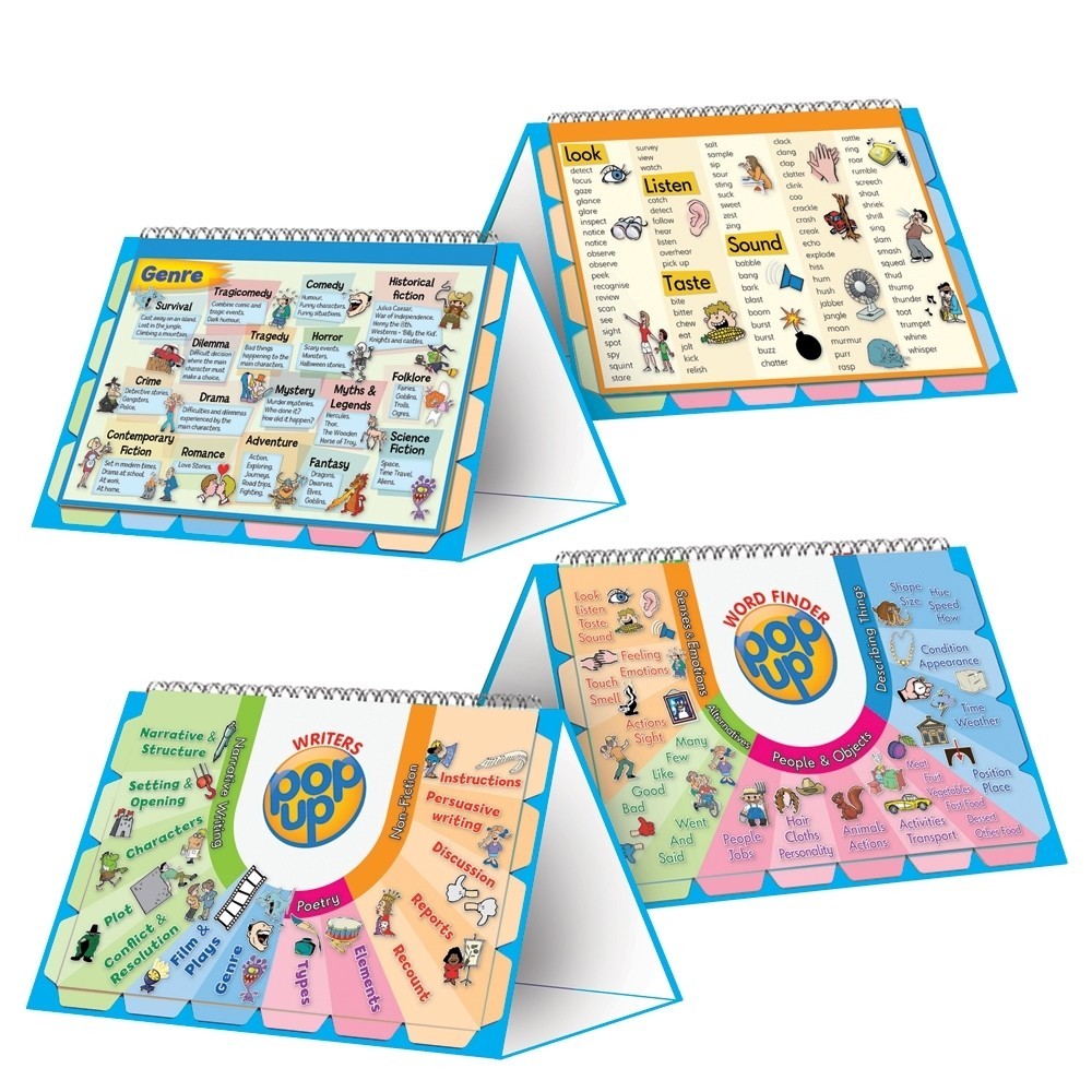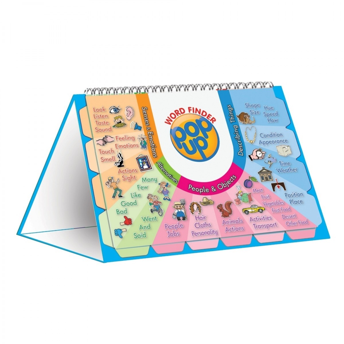 The Writing Pop-Up is a a double-sided directory with a guide to writing on one side and word finding examples on the other. Visual examples are provided throughout. For children 5 to 9. Can be used for writing instruction or support during writing.
